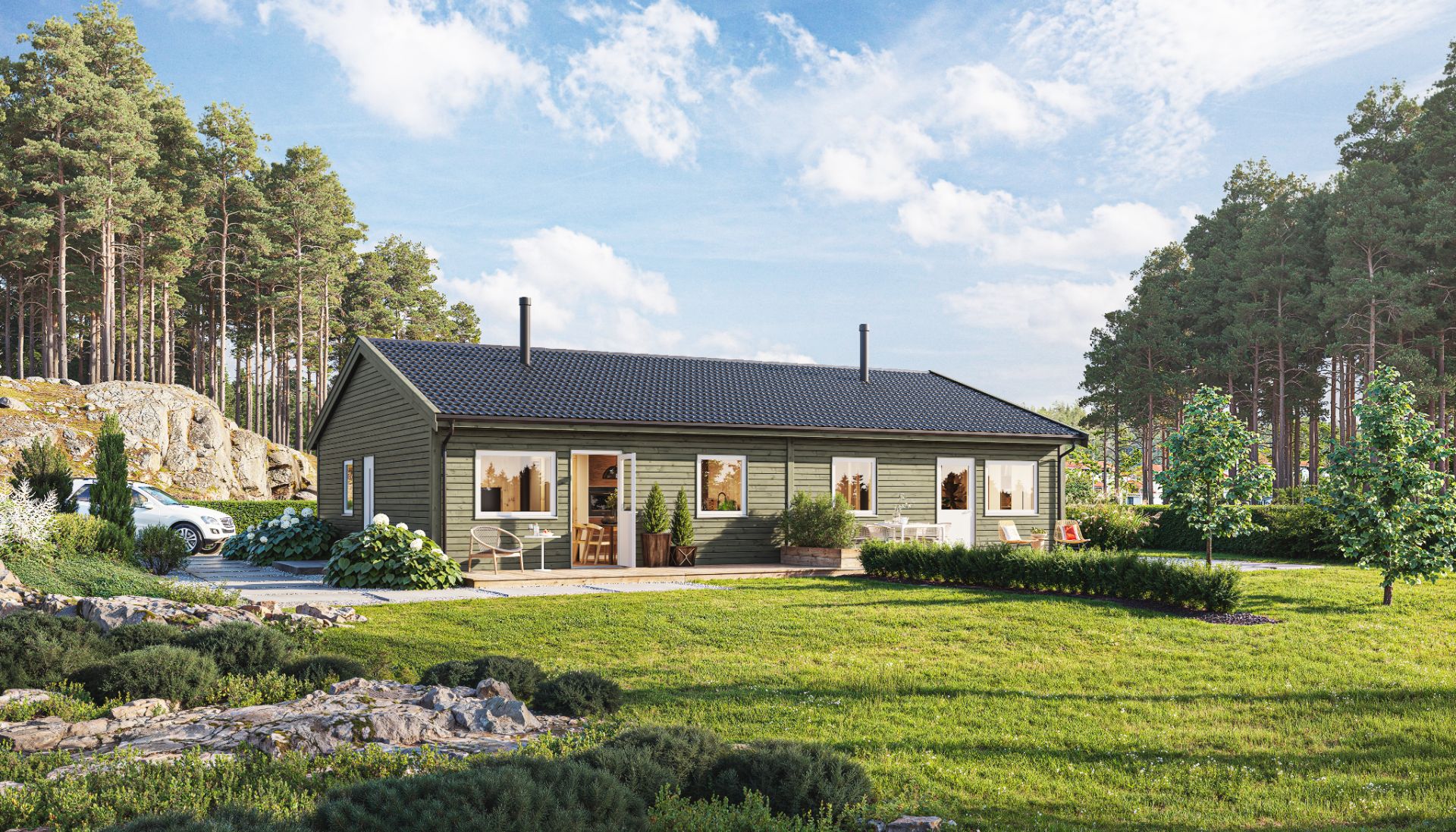 Tomannsboligen er tegnet med to alternativer til planløsning - den ene innehar tre soverom, og den andre viser det tredje soverommet som sportsbod for å tilfredsstille bod-kravet uten å måtte bygge frittstående sportsbod.